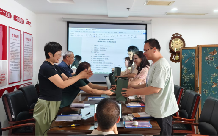 2025年6月27日上午,河北满好会计师事务所举办了《师带徒协议》签署仪式:在全体员工见证下,四对师徒分别签署《师带徒协议》,师傅有针对性的分别赠送给徒弟学习书籍,徒弟分别回赠师傅谢礼,8位师徒合影留念。